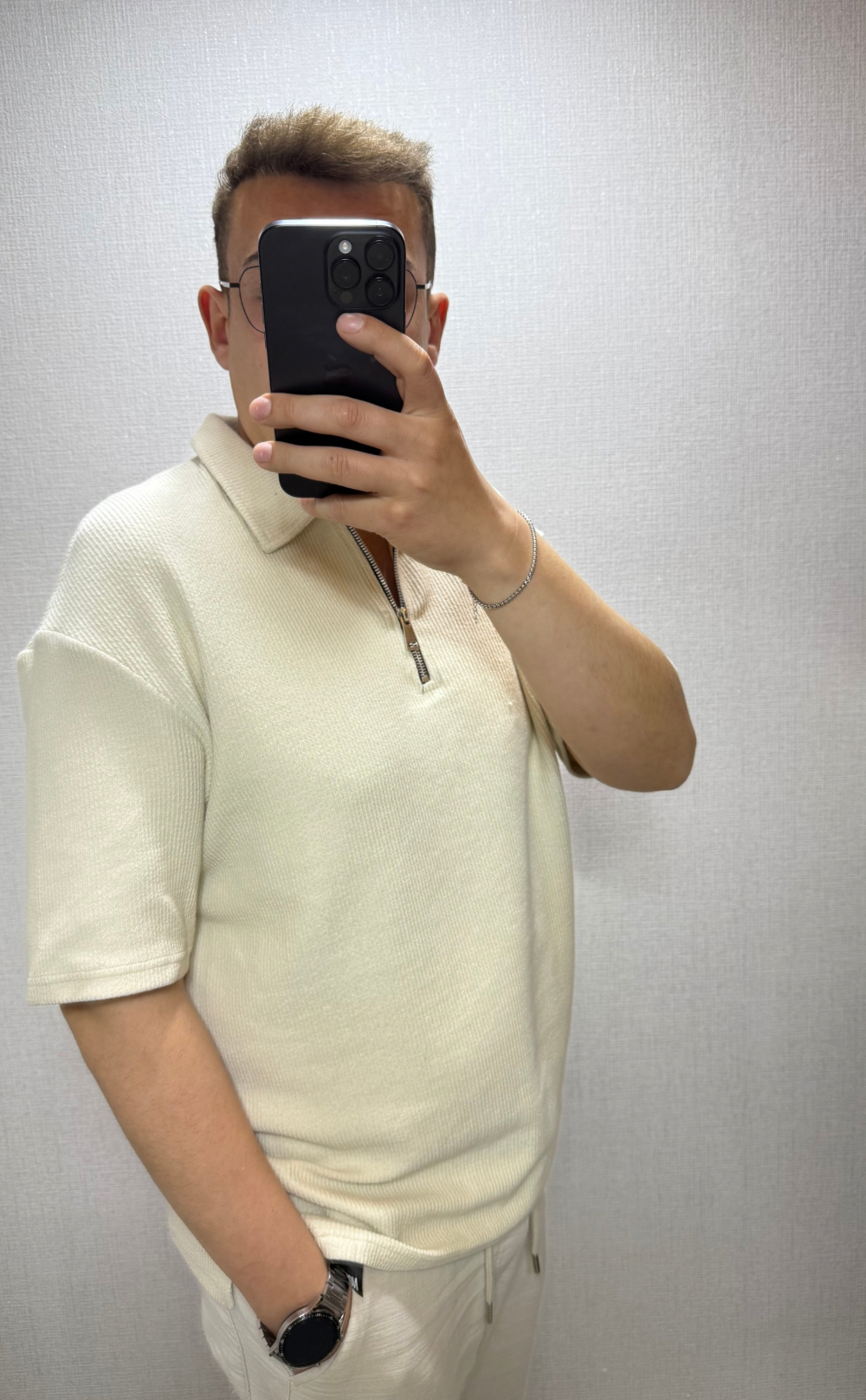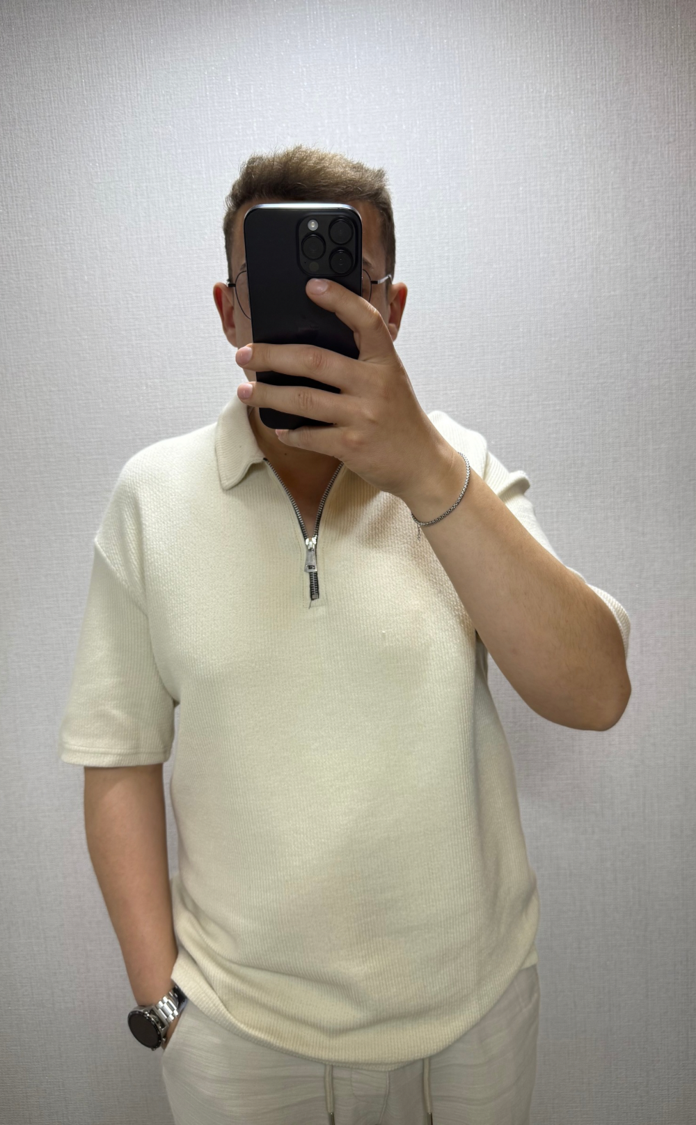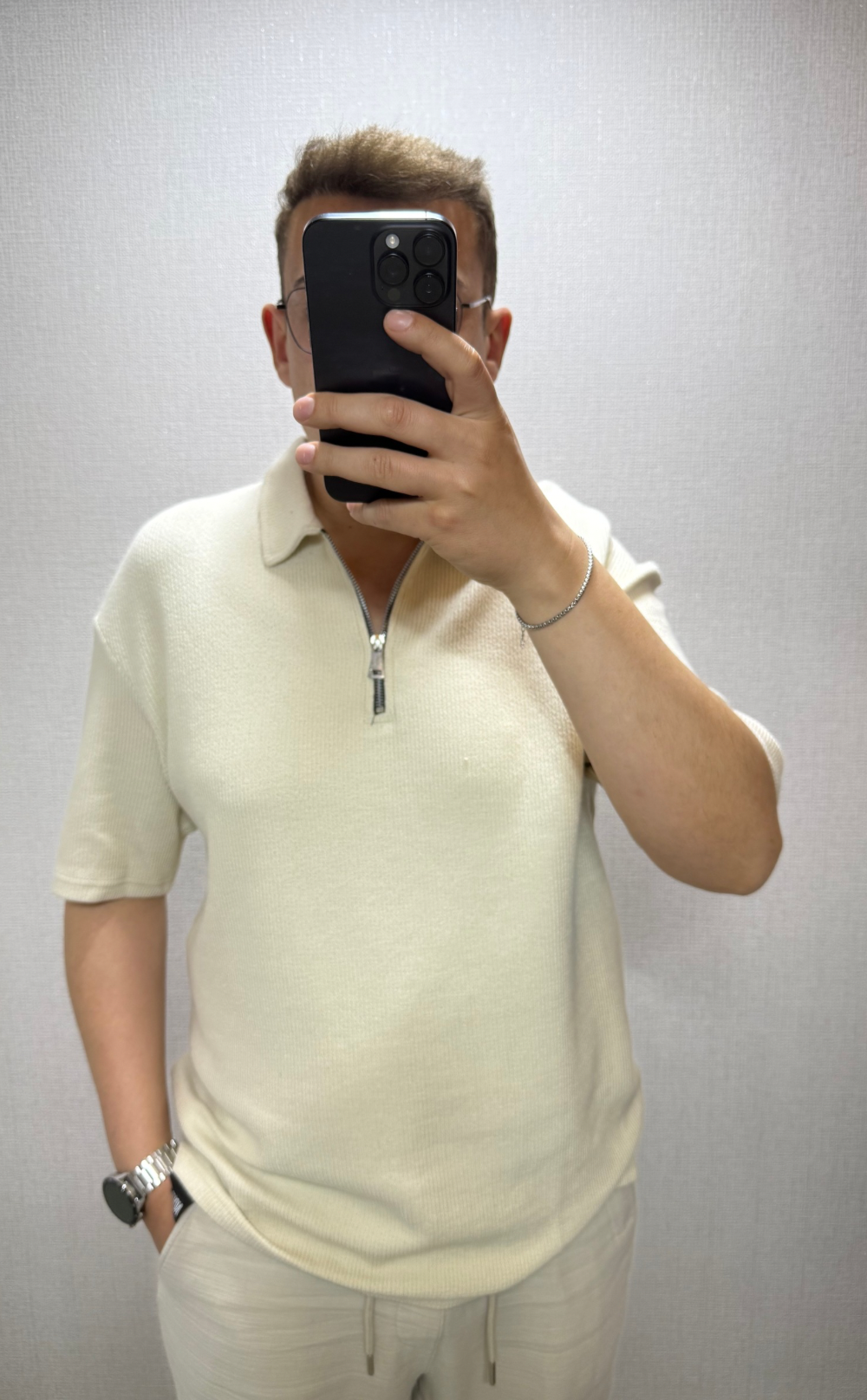Bej Fitilli Polo Yaka Fermuarlı Tişört