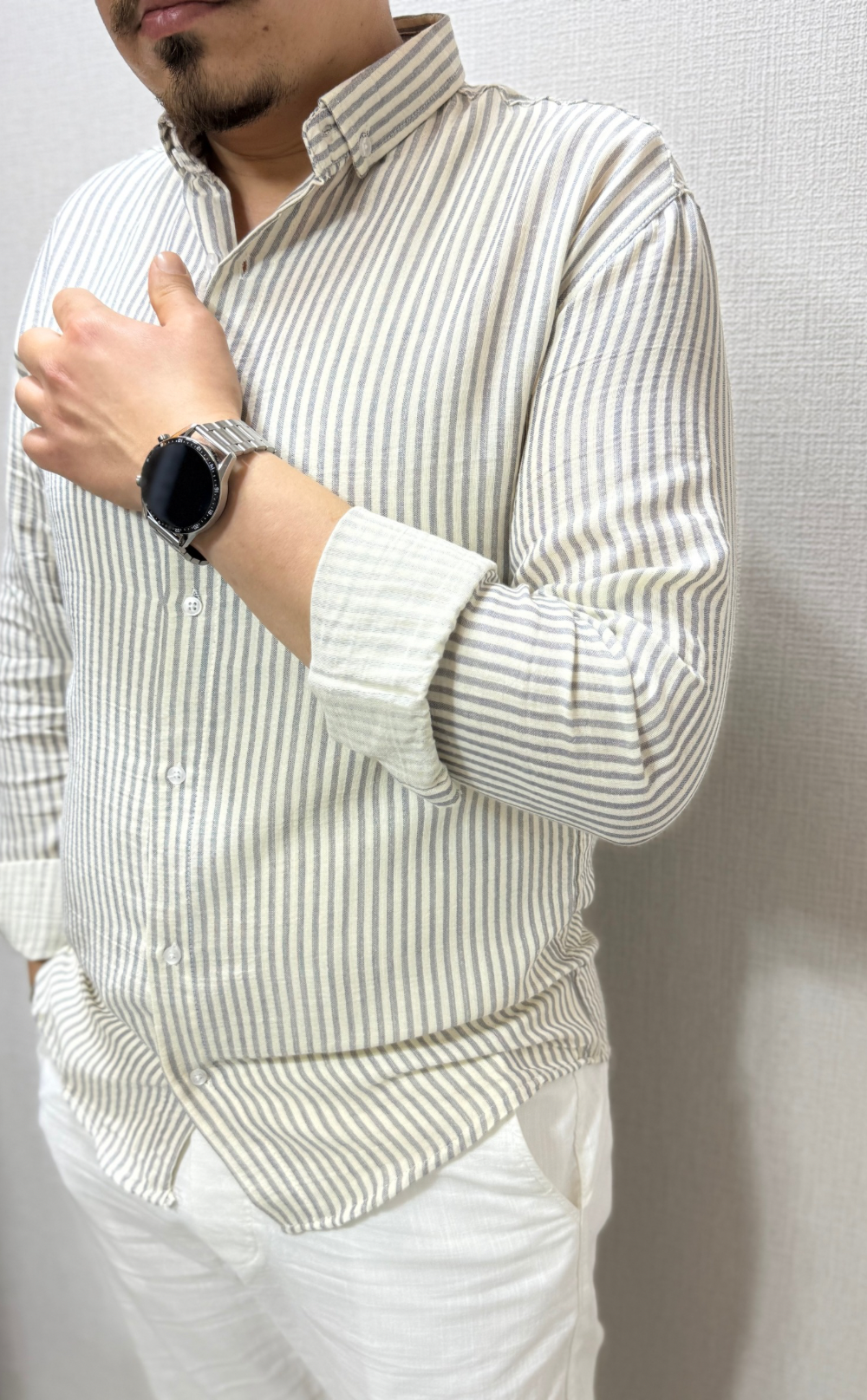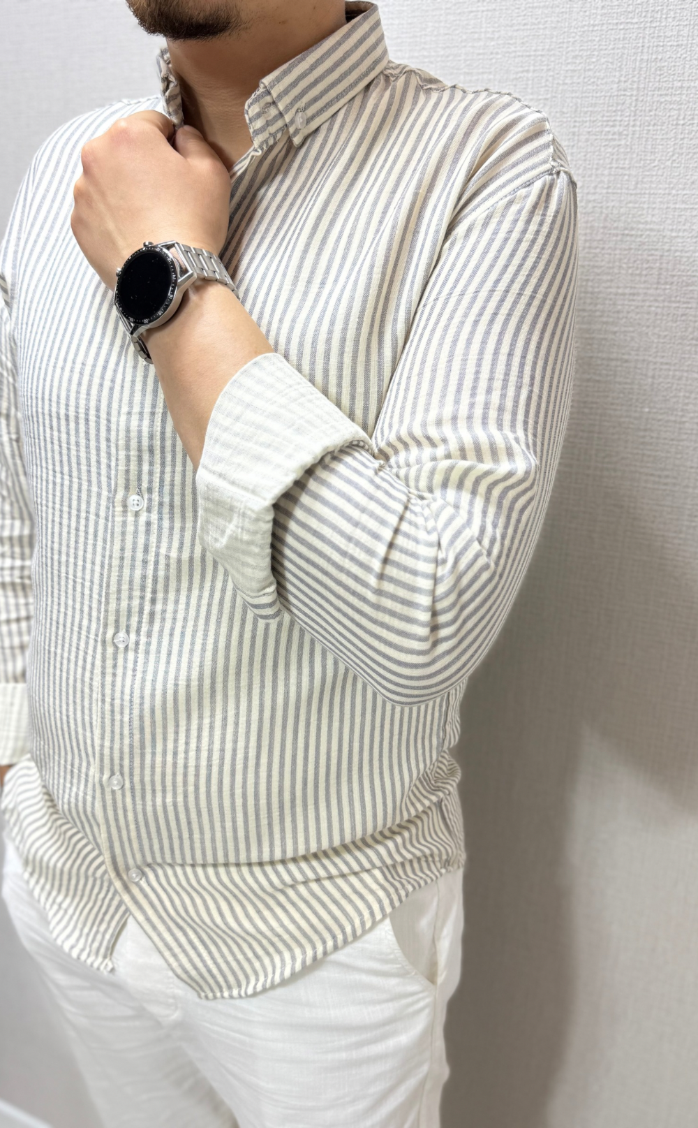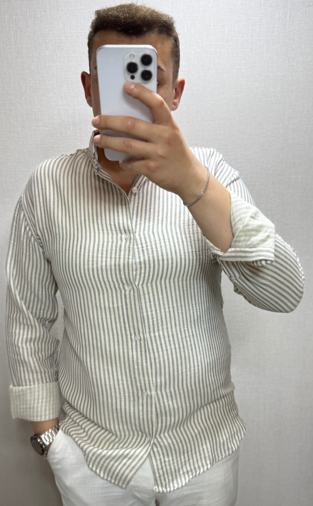 Gri Çizgili Müslin Keten Gömlek