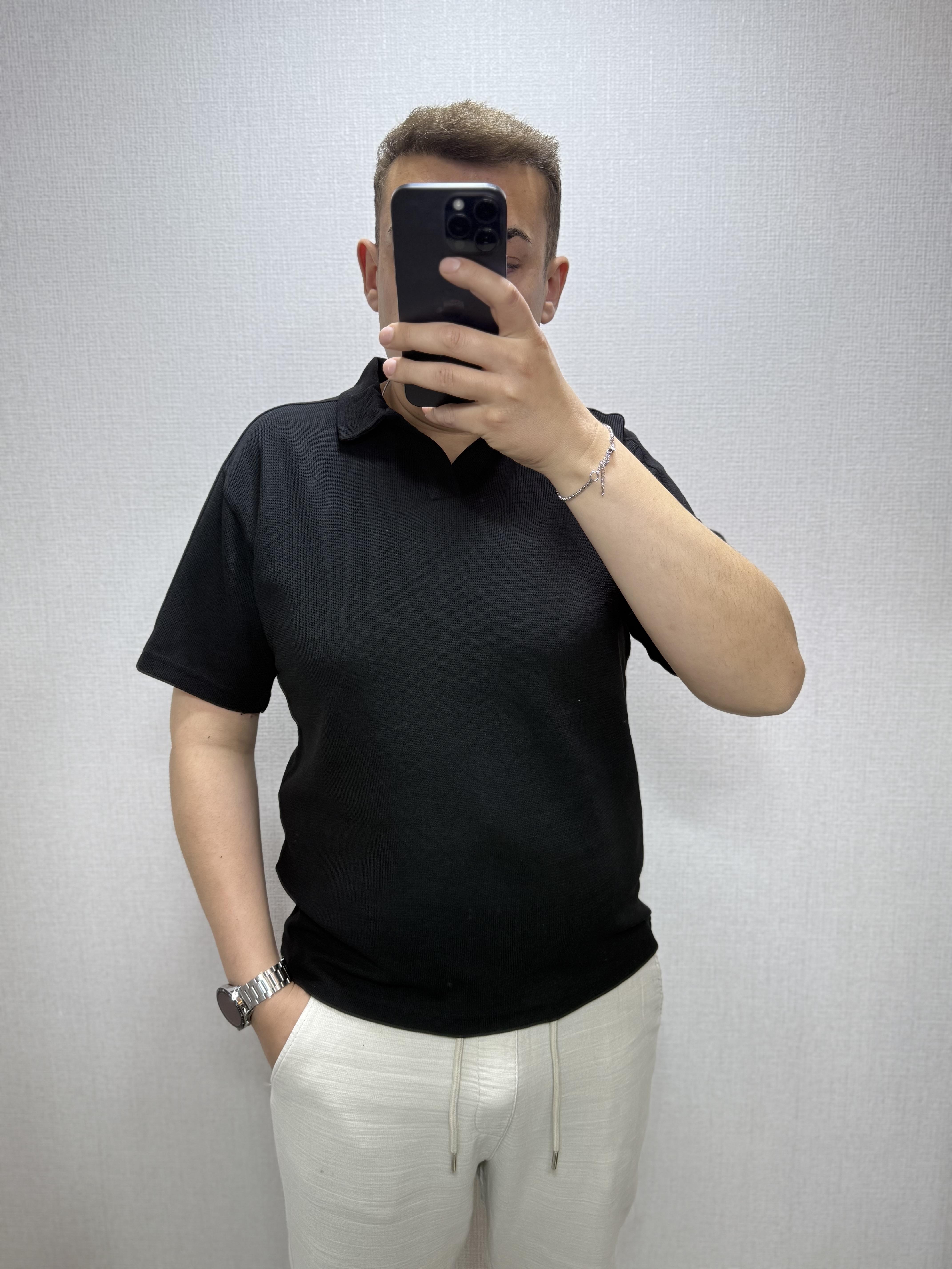 Polo V Yaka Örme Tişört